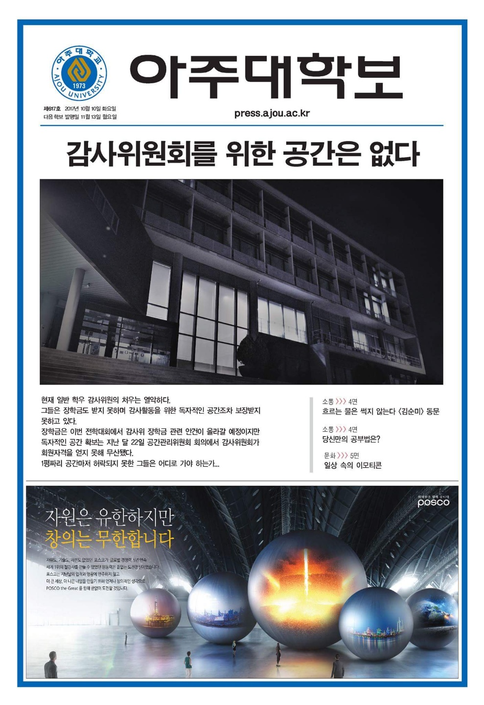 [학보사] 아주대학보 617호가 발간됐습니다!!